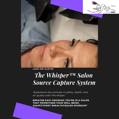 “At Lash-Me in Austin, your comfort and health are our top priorities. Discover what size eyelash extensions are perfect for you while we use The Whisper, a state-of-the-art system that removes adhesive fumes, ensuring a safe and clean experience. Our lash extension guide helps tailor the perfect eyelash extensions to enhance your look.”